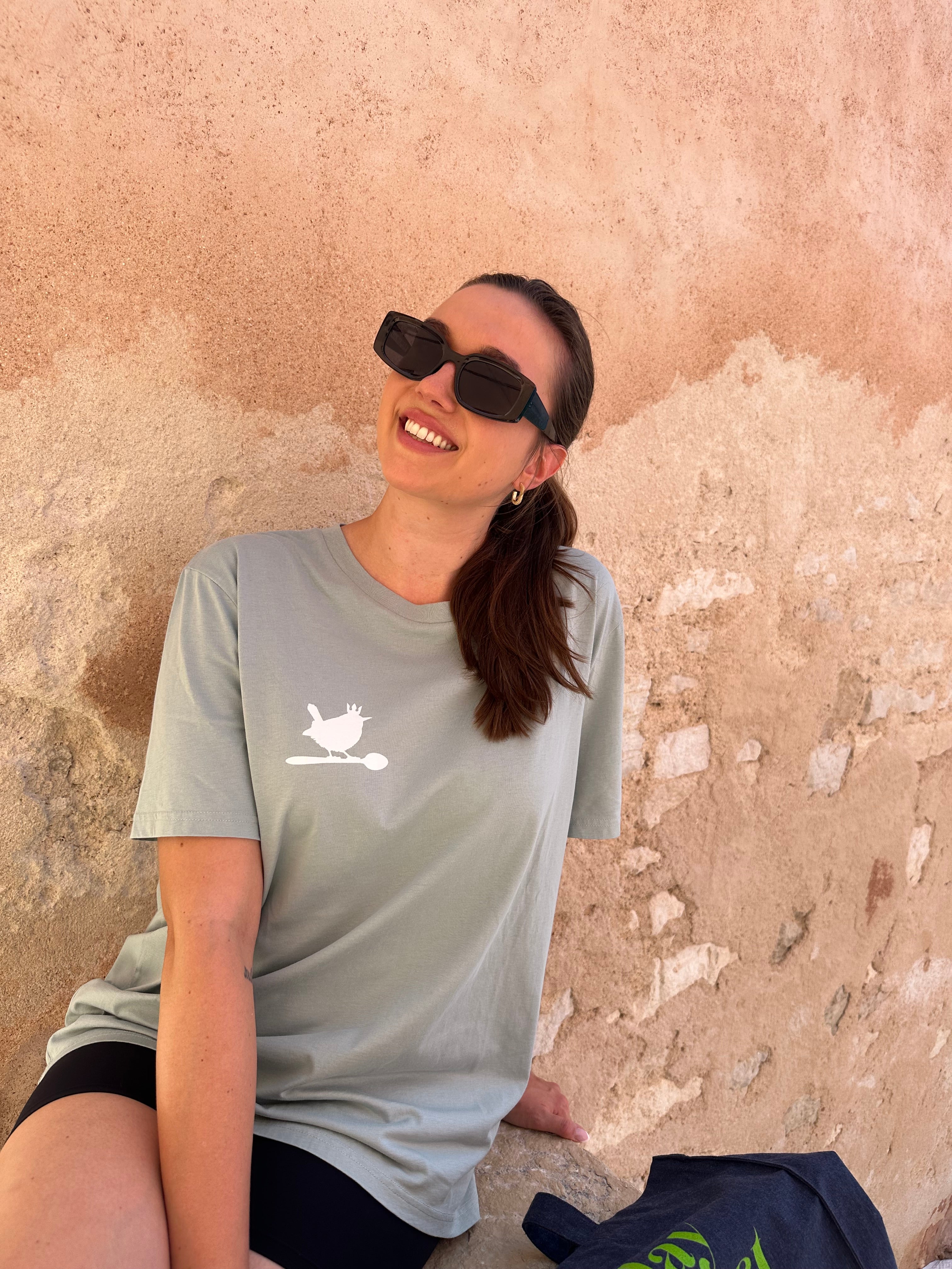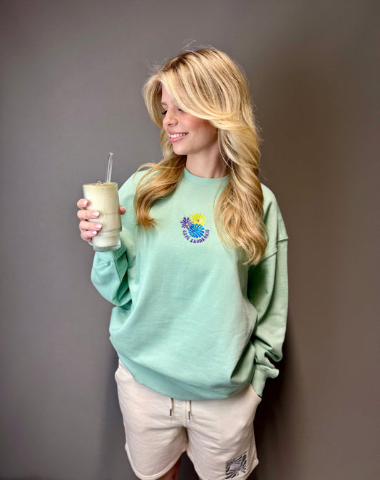 Oversize Sweatshirt "Flower Café Zaunkönig" - in Misty Jade