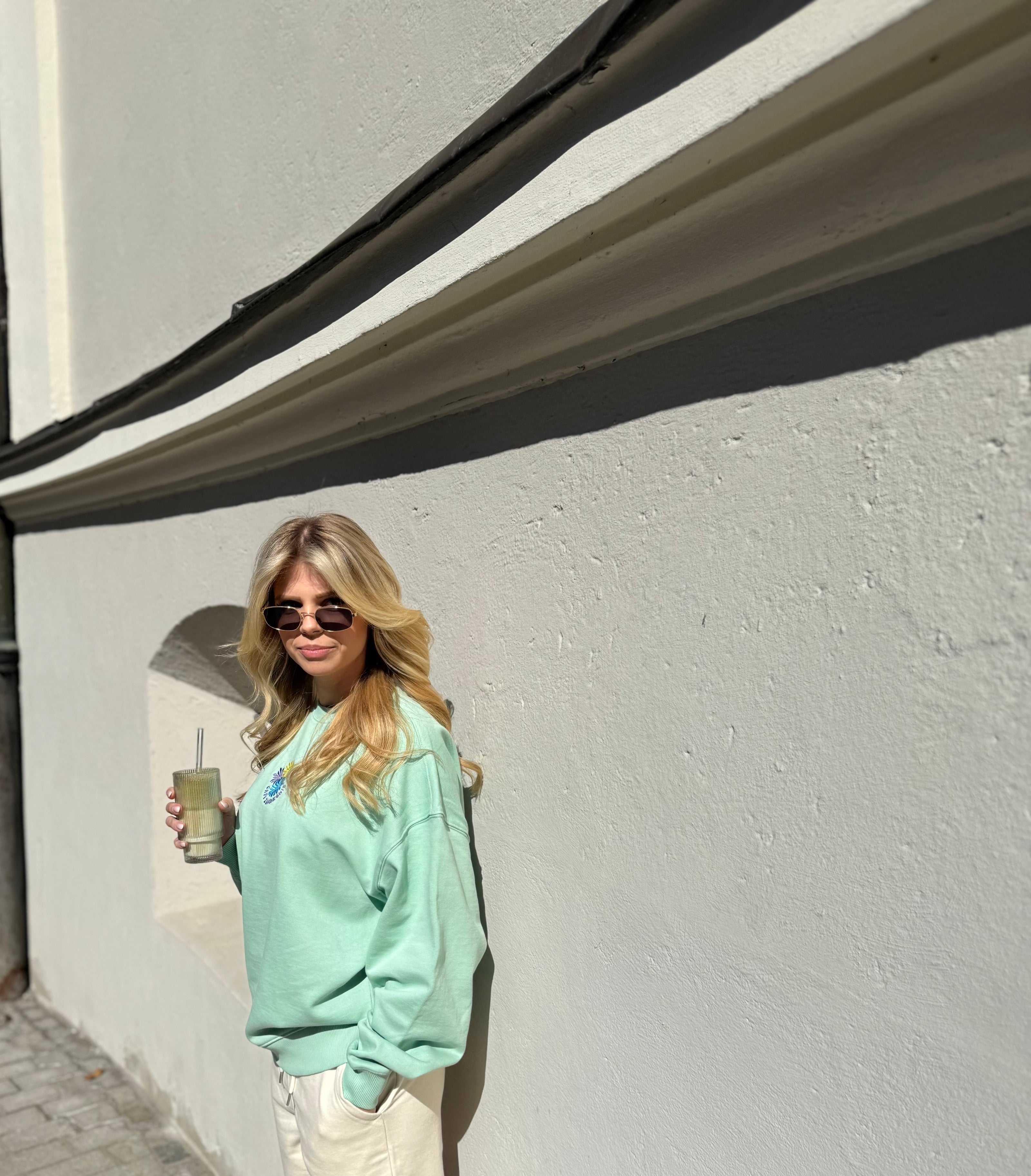 Oversize Sweatshirt "Flower Café Zaunkönig" - in Misty Jade