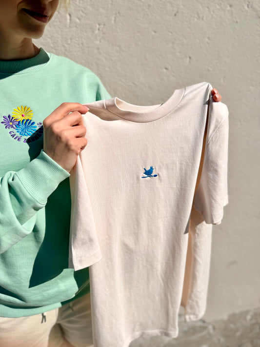 Oversized Dropshoulder "Flowers in the Sun Café Zaunkönig" White
