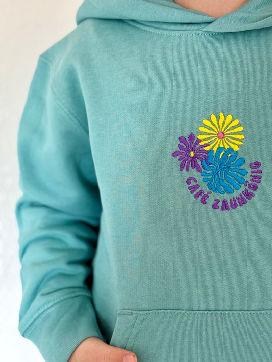 Kids Hoodie „Flower Café Zaunkönig“ Teal Monstera