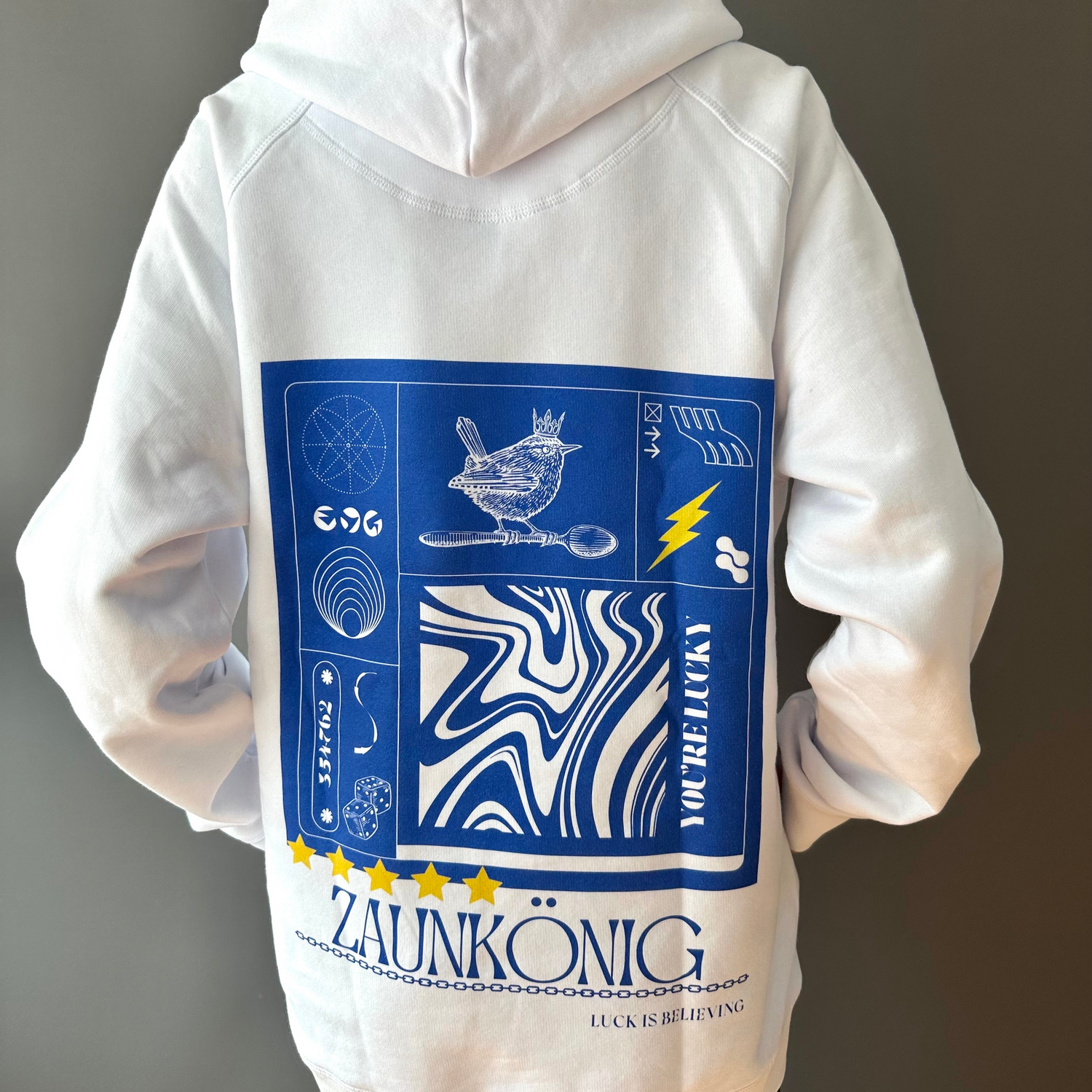 Oversized Hoodie "Zaunkönig Stick" Blue Ice